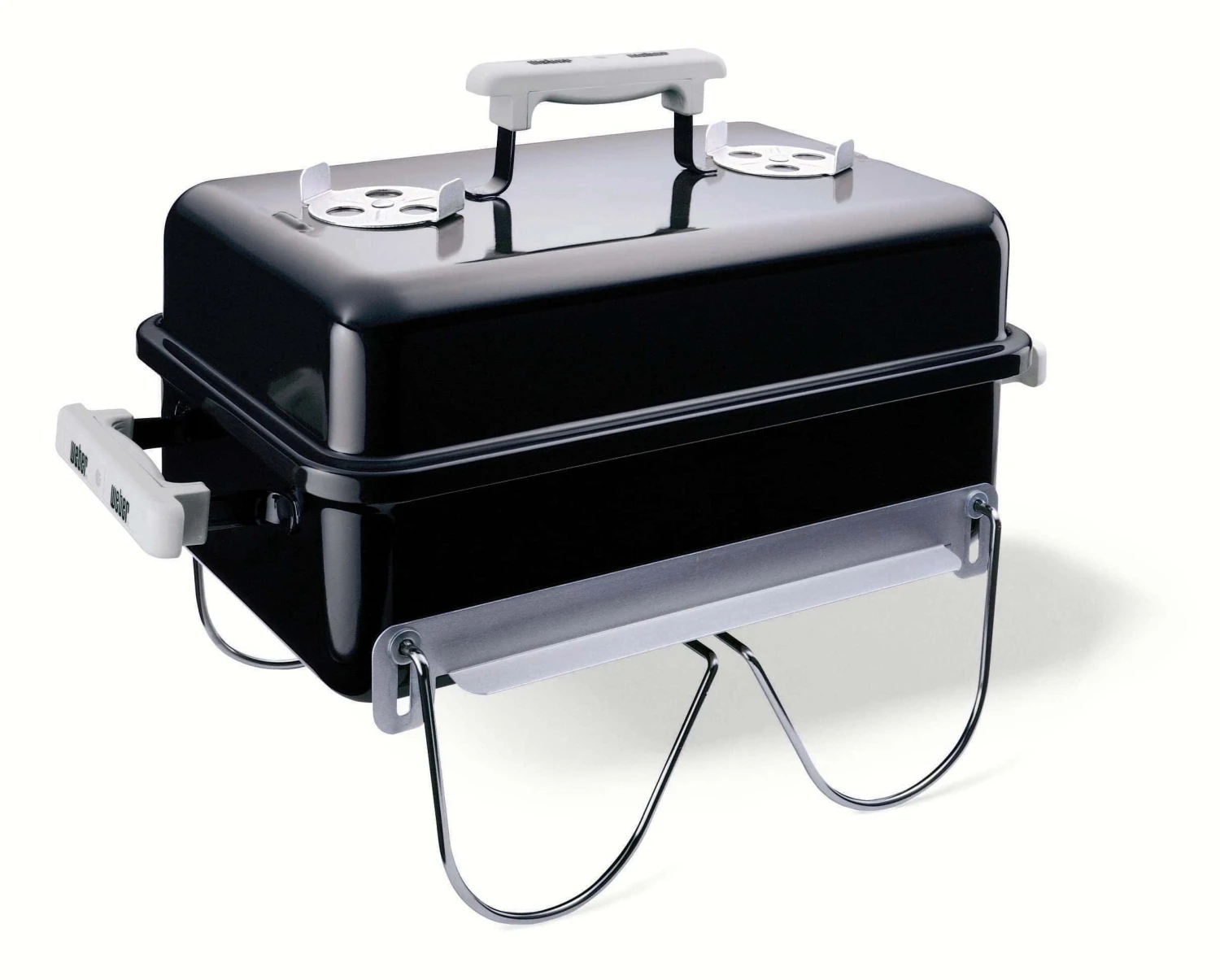 This Weber rectangular portable charcoal BBQ grill is small enough to carry around with ease but large enough to cook 6 hamburger patties at once. Weber ingenuity shines through in the form of legs that swing up and over the top of the grill, securing the lid in place and shrinking its overall profile for storage in cramped spaces. The Go-Anywhere charcoal grill is constructed with a porcelain-enameled bowl and lid, supplying chefs with the rust-resistance and durability Weber is known for.