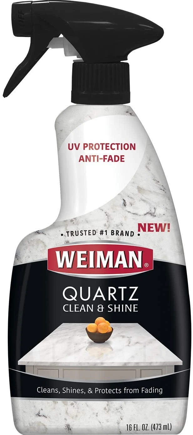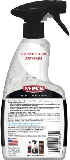 Weiman Quartz Countertop Cleaner and Polish – Clean & Shine Your Quartz Countertops Islands and Stone Surfaces with UV Protection. Enhance the natural beauty of stone surfaces in your home with the Weiman Quartz Clean & Shine Trigger Spray. Here at Weiman, we have developed cleaning products that go beyond simply cleaning to beautify and protect each of your delicate difficult to care for surfaces. Instantly reverse dullness & enhance the brilliance of your stone surfaces with Weiman Quartz Clean & Shine Cleaner Spray. Its superior cleaning power brings out a whole new level of luster and helps resist stains.