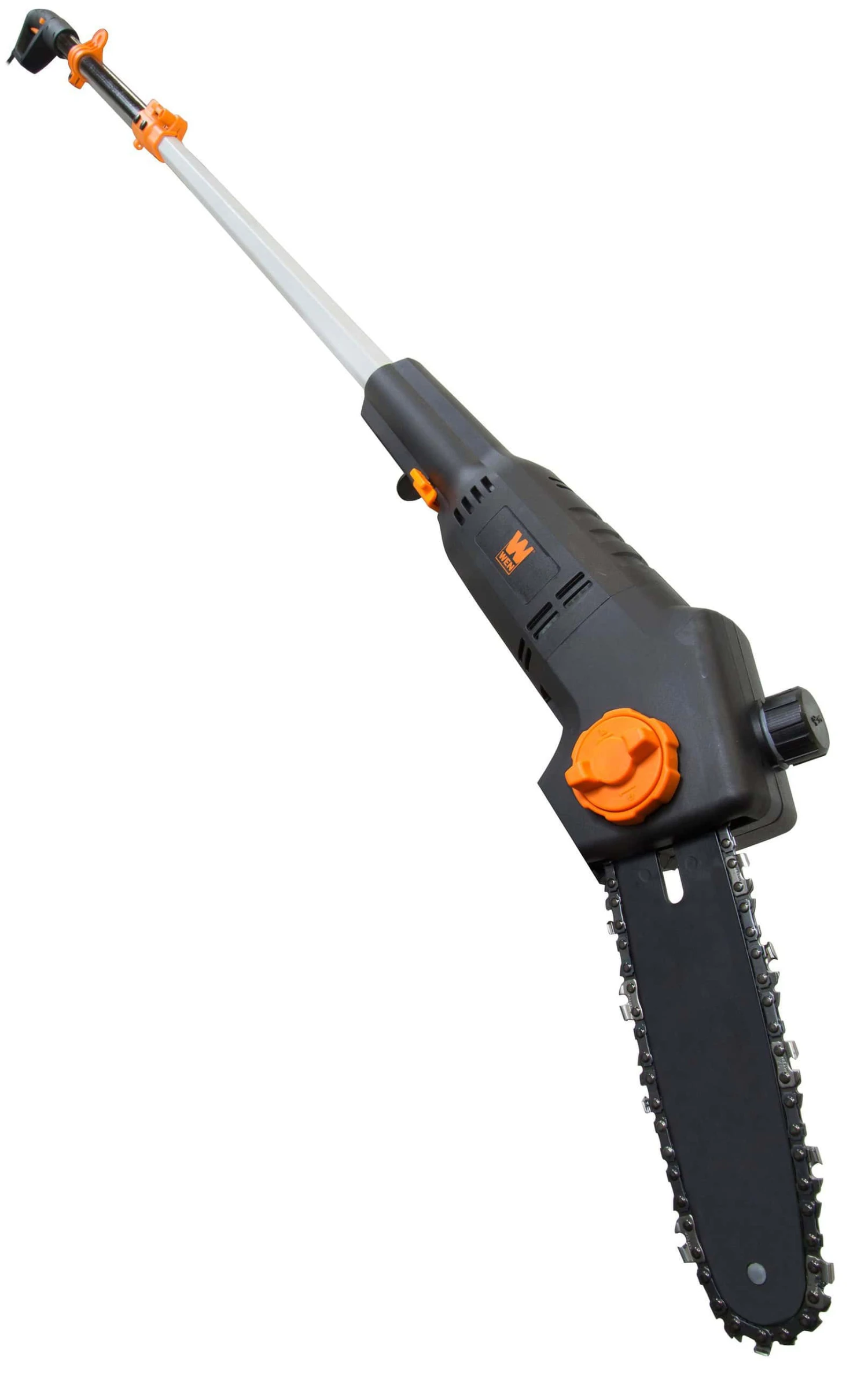 Remember when you could trim trees without using a single drop of gasoline. Free yourself of ecological guilt with the WEN 6 Amp 8 in. Electric Pole Saw. Telescope the pole anywhere from 6.8 ft. all the way up to 8.75 ft. Our powerful 6 Amp motor runs the blade at a whopping 36 ft. per second. Automatic oiling system keeps your chain properly lubricated while the tool-free blade changes make for easy and quick tensioning between cuts. Lightweight 7.2 lbs. design combined with the included shoulder strap alleviate stress and limit fatigue during operation. The saw also includes an ambidextrous built-in safety switch to minimize accidents and a scabbard to protect the chain and bar between jobs. And, because its a WEN product, your pole saw comes backed by a two-year warranty, a nationwide network of skilled service technicians, and a friendly customer help line all to make sure you remember WEN.