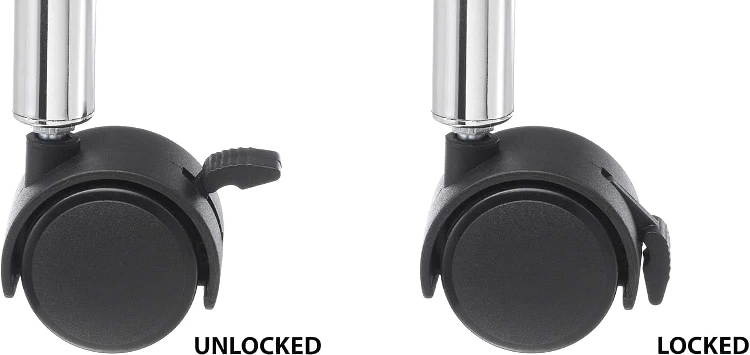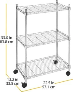 - The shelves can be adjusted in one-inch increments to store variable-sized accessories and the included wheels allow for easy mobility around your home and can be locked for your convenience