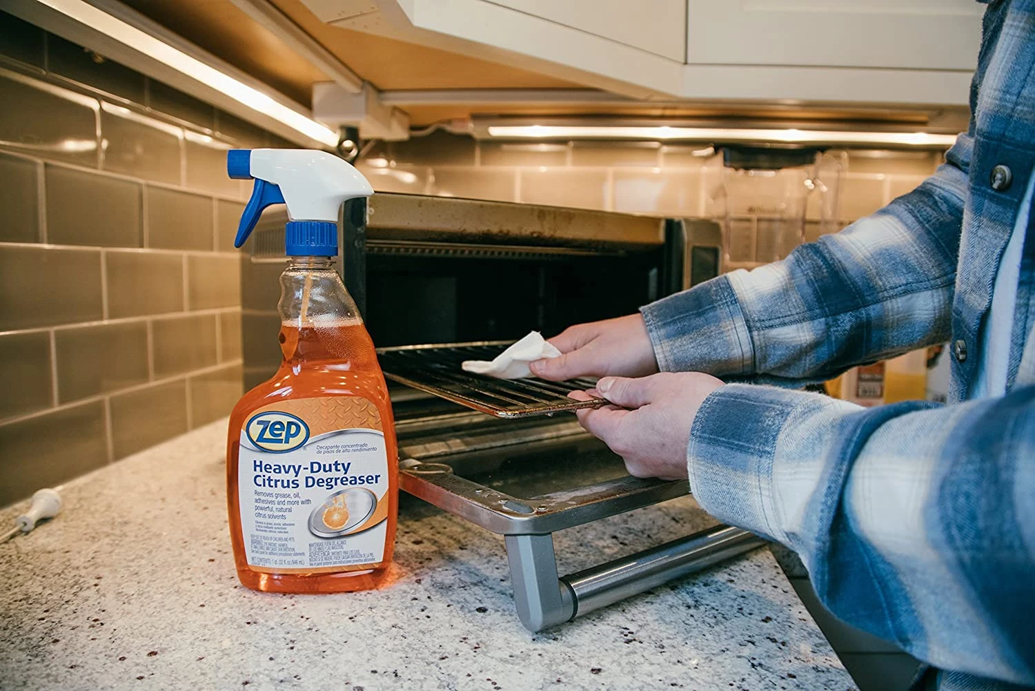 - ZEP HEAVY-DUTY CITRUS DEGREASER: Natural citrus solvents remove adhesives, grease and oil from most surfaces