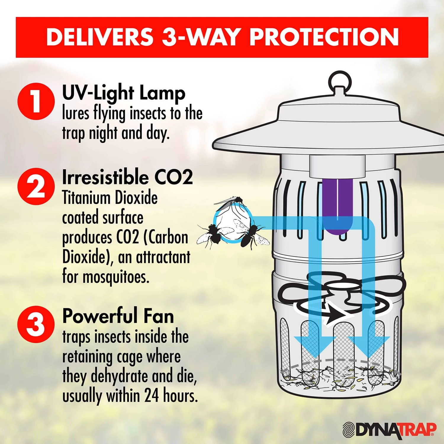 - Effortless 24/7 continuous attraction works day and night to help protect your family from pesky flying insects. Designed for any room or area of your home where flying insects gather including kitchens, bathrooms, garage, and living spaces.