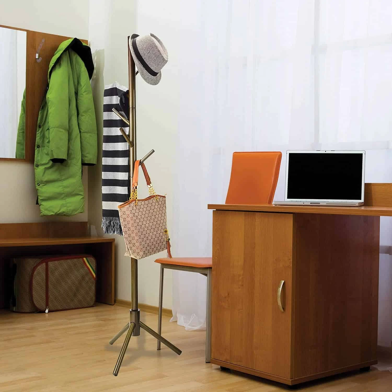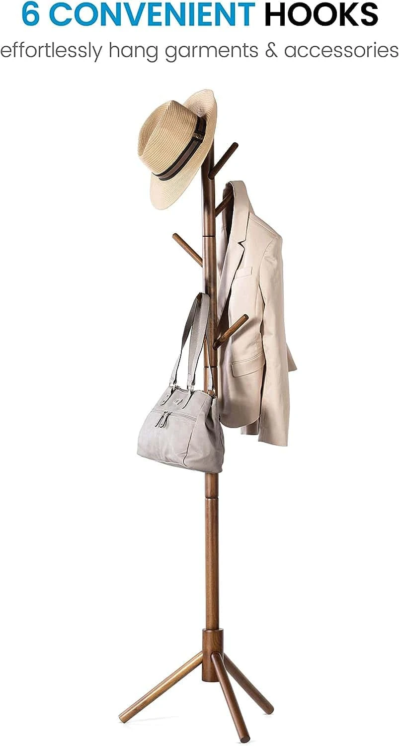 - SIMPLE STYLE – The sleek wood design of this coat rack stand is universal for matching any home decor. A purse hanger and hat stand that will look great in any office, hallway, kitchen, or bedroom